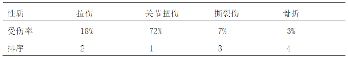 造成运动损伤的因素很多,如缺乏合理的准备运动、技术上的错误、激烈的对抗、身体及心理疲劳、动作粗野等等,可在锻炼、练习、比赛多处场景下发生,因而在篮球运动中运动损伤很难避免,关节受伤是篮球运动中受伤最多的一个部位。
